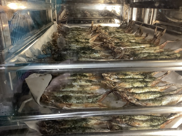 ししゃもに青のりをまぶし、200℃のオーブンでカリッと香ばしく焼き上げました。
