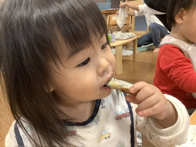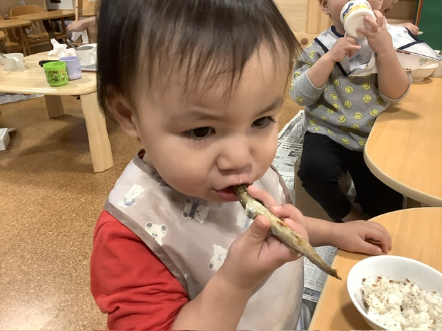 こどもたちは、上手に掴んで頭から、しっぽから、思い思いにガブリッ!!