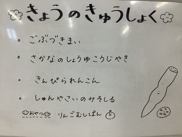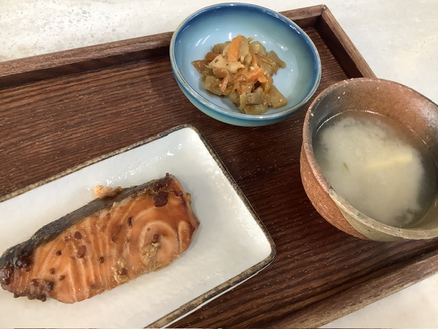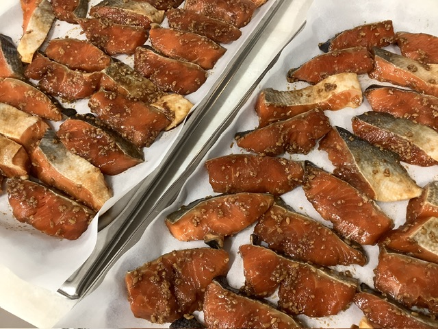 今日は山口水産から届いた鮭を、給食室手作りの醤油麹に漬け込んで焼き上げました。