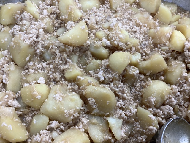 35ファームの採れたてじゃがいもを使い、そぼろあんかけを作りました。