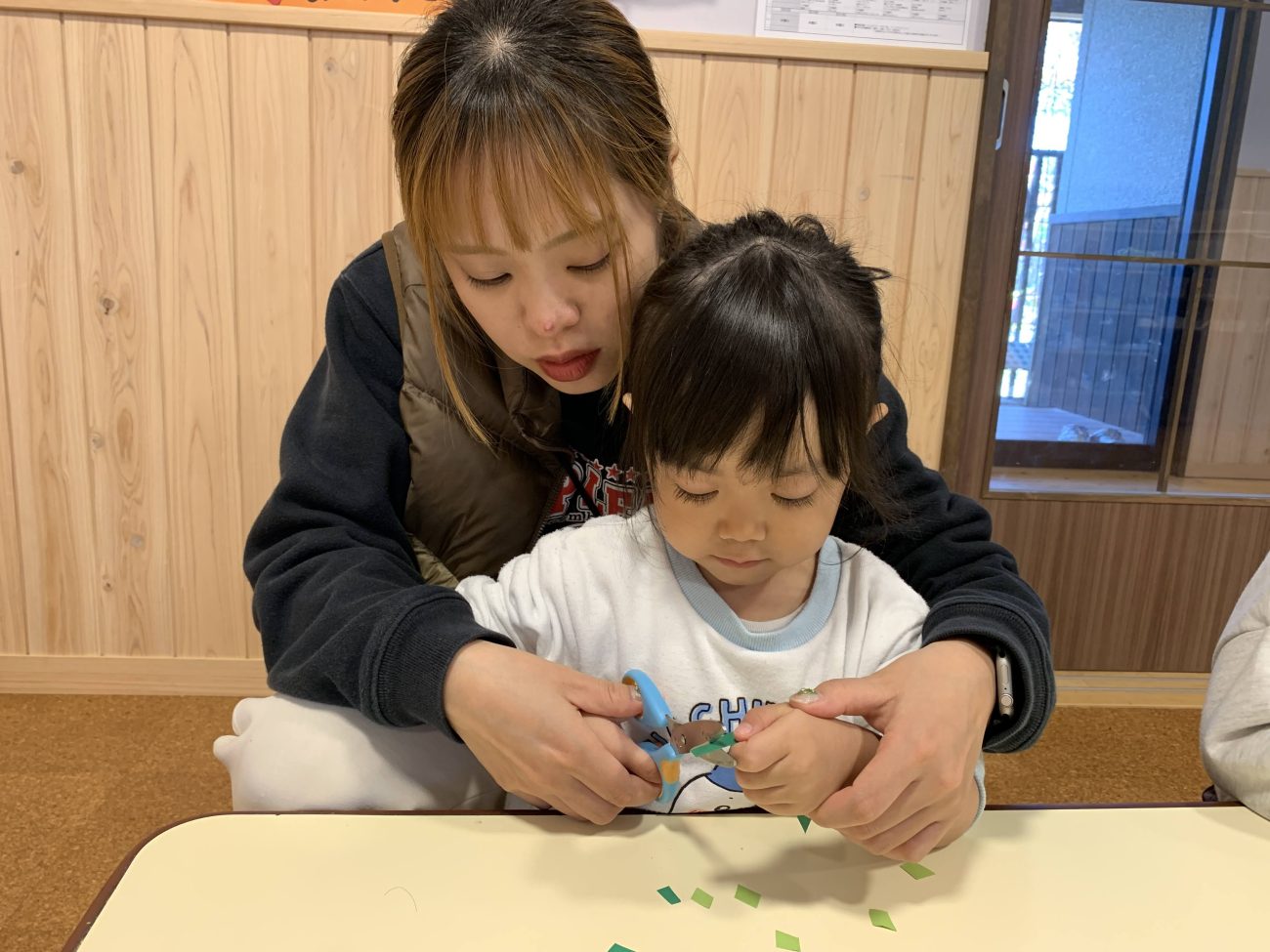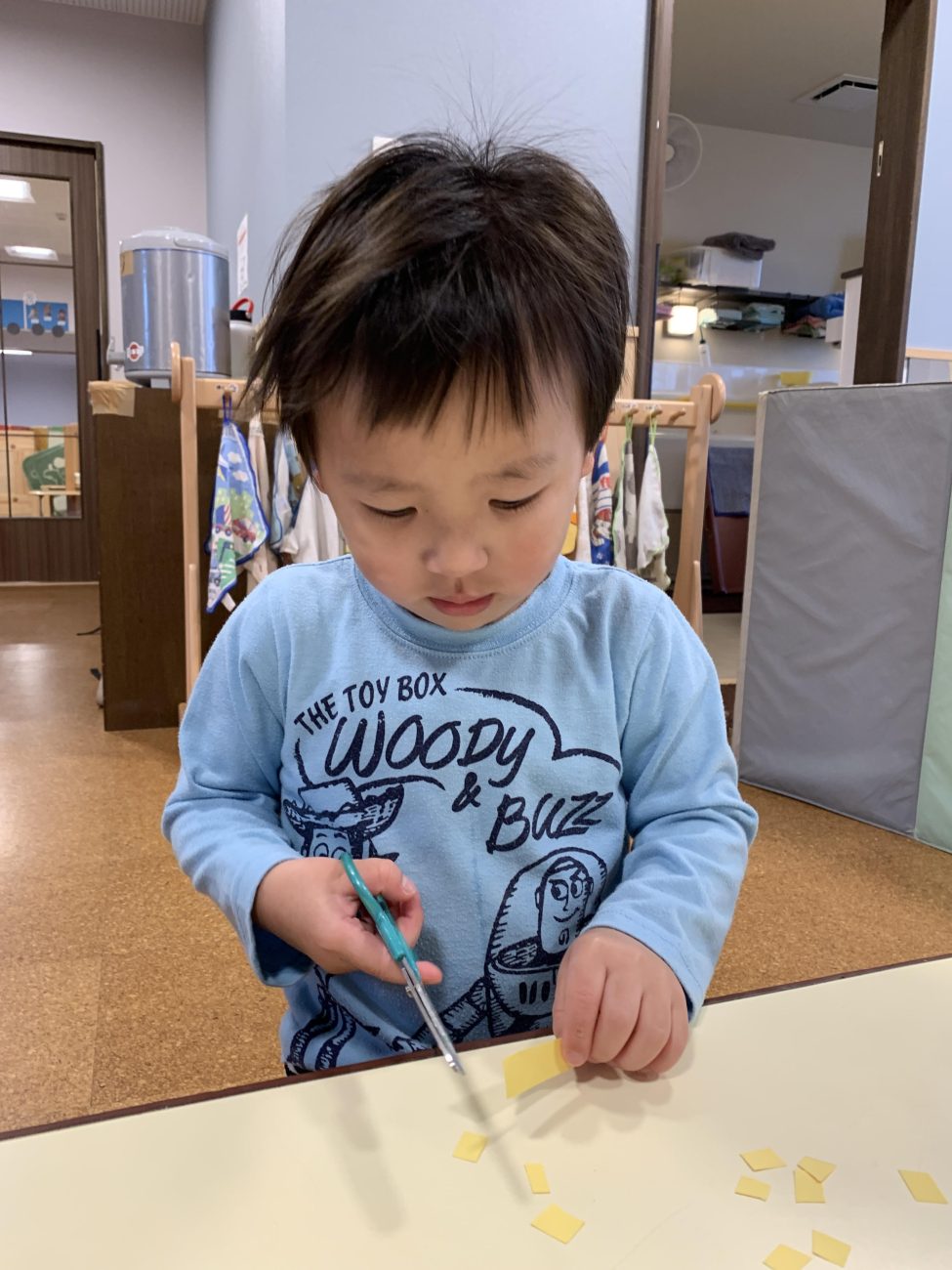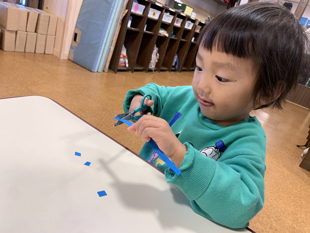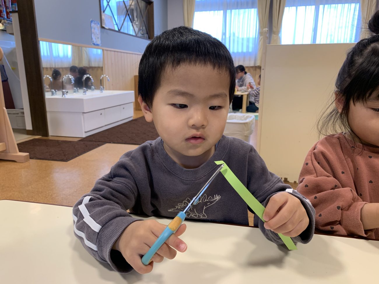 ハサミにチャレンジ!ゆり組(2歳児)