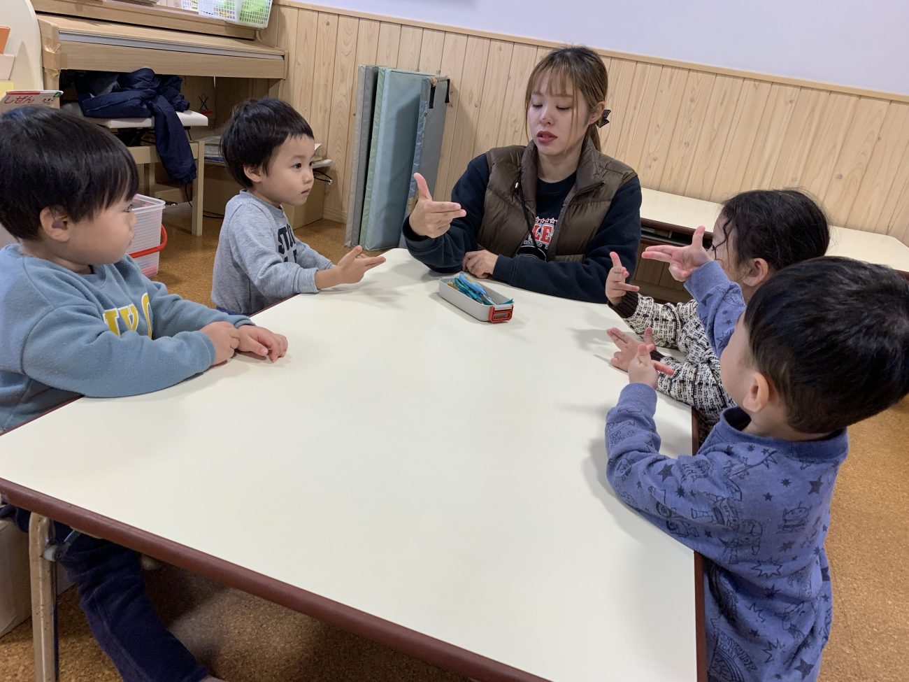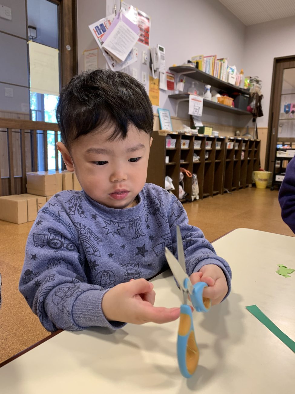 私たちも子ども達の前でハサミを使っている機会が多く、その都度大人が「あぶないからね」とだけ伝えていたのでハサミは危ないということは知っていたようです。