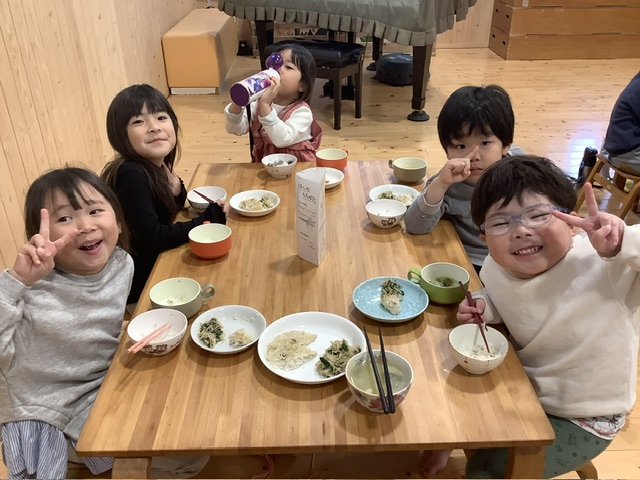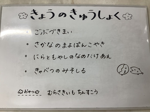 今日のみそ汁の具材は、薄揚げ、キャベツ、ワカメ、35ファームのじゃがいもが入りました。