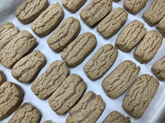 ちんすこうは小麦粉、油、きび糖があればとても簡単に作ることができます。今回は紫芋パウダーで作りましたが、かぼちゃパウダーやココア、塩、黒糖でいろいろな味が作ることができます。