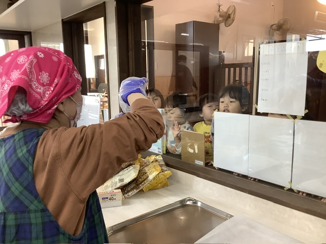 朝からこどもたちの元気な姿が見られ、給食室に手を振りに来てくれたり挨拶をしてくれた子もいましたよ!