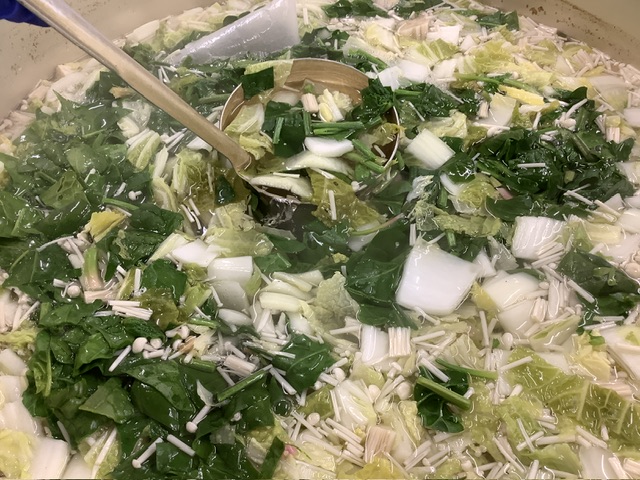 35ファームの白菜とほうれん草、えのきたけが入ったすまし汁です。