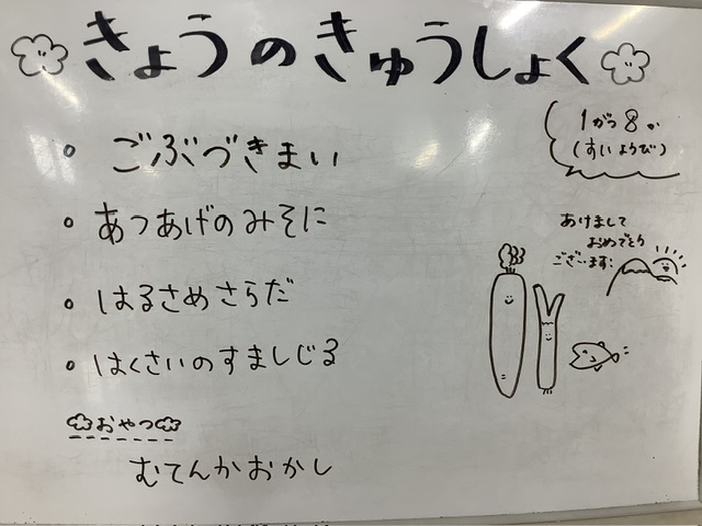 給食室では、厚揚げは四角く切るのではなく、少し断面が斜めになるように切っています。この一工夫で厚揚げが調味液に触れる面積が大きくなり、味も染みやすくなります。