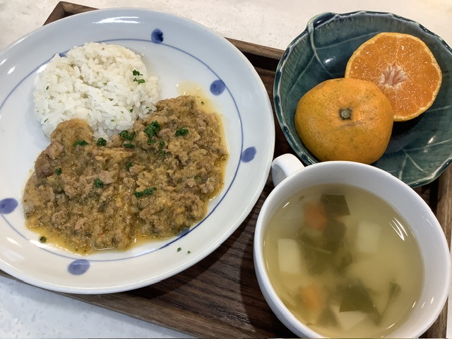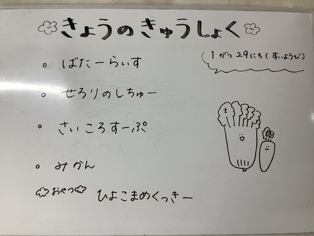 玉ねぎ、じゃがいも、35ファームの人参、のはら園の新鮮採れたて大根、かぶ、水菜が入りました。味付けは給食室手作りの“玉ねぎ麹”のみ!かつお出汁の風味と、新鮮野菜の旨味を感じる、身体も心もポカポカ温まる美味しいスープに仕上がりました。