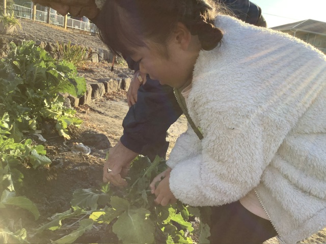 春菊と水菜は、さくら組のこども達と一緒にのはら園で収穫をしました。