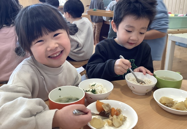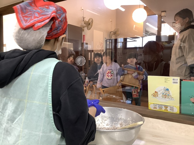 おにぎりを握るところを見ていたこども達は、「今日はおにぎりだ!」と嬉しそうな様子でした。