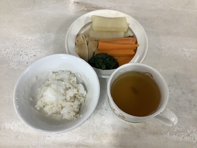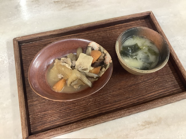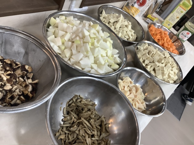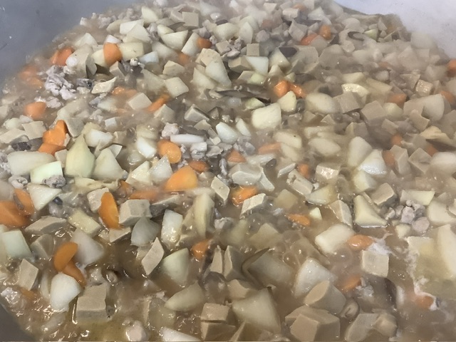 今日は、35ファームの人参がたっぷり入り、その他にもしいたけ、大根、高野豆腐、たけのこ、ごぼうの蒸し煮が入りました。