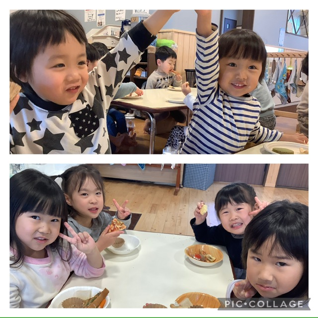 年長組にとって錦ヶ丘での残り少ない園生活ですが、卒園の日まで給食の時間も素敵な思い出となるよう過ごしてほしいです。