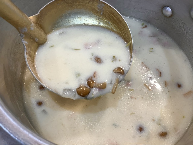 少し濃いめの出汁に麦味噌で味をつけ、仕上げに豆乳を加えることでまろやかな豆乳汁に仕上がります。