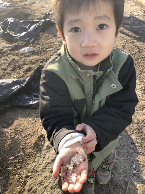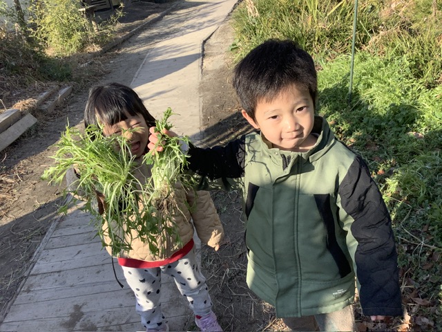 朝イチののはら園は、寒さのせいもあり霜柱がたくさん!野菜を採りにのはら園に出かけますが、冬の畑にはたくさんの発見があります💡足で踏んでシャリシャリの感触を楽しんでいました。