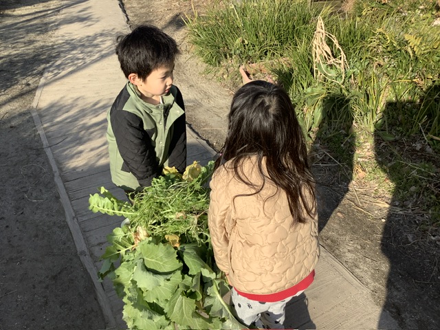 採れたて野菜を2人で運んでくれました。ありがとう😊