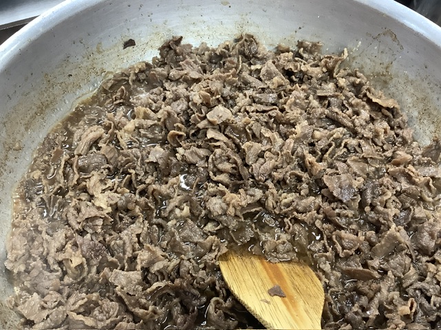 甘辛く炒めた牛肉が、ちらし寿司との相性抜群でした。具沢山で、優しい味のちらし寿司に仕上がりました。