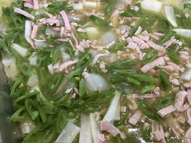 新玉ねぎ・大根・スナップえんどう・南州農場のハムが入ったマリネです。