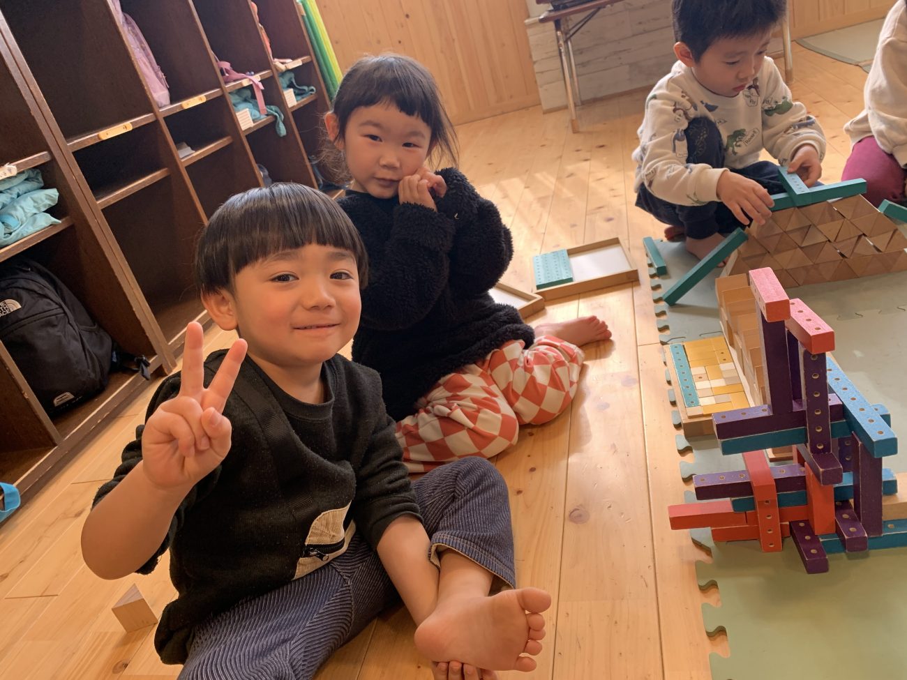 きく組の子どもたちは積み木遊びが好きで、経験を重ねるごとにイメージした物を豊かに表現することができるようになってきました。