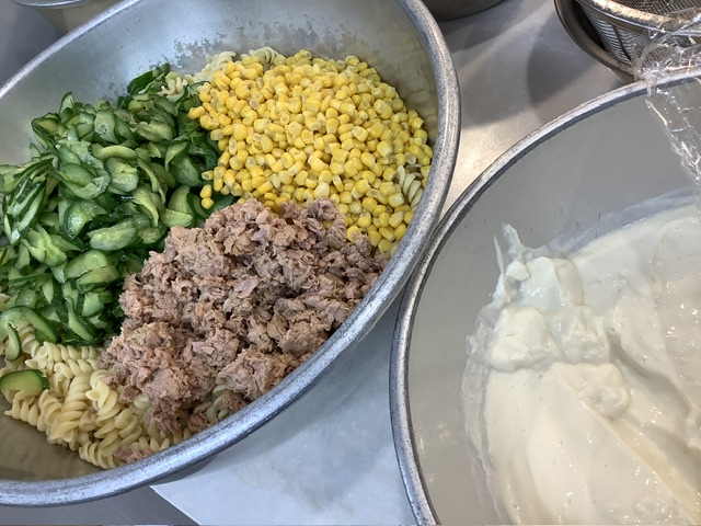 形状を変えることでいつものマカロニサラダより少しだけオシャレに仕上がりましたよ。