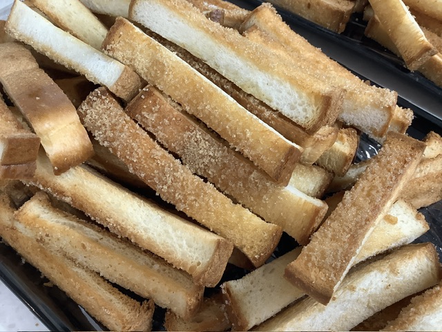 米油を軽くまぶし、きび糖をかけてカリッと焼き上げました。