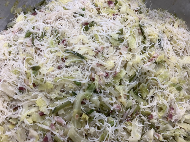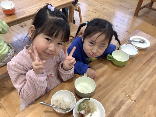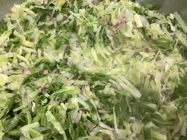 南州農場のベーコンに、春キャベツ、玉ねぎ、スナップエンドウの春野菜を使用した焼きビーフンは彩りも春らしく仕上がり、こどもたちから大好評でした。