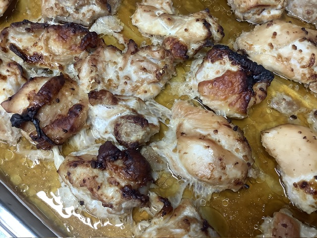 手作りの醤油麹に、たっぷりのすりおろし生姜を加え鶏肉を漬け込んで焼きました。
