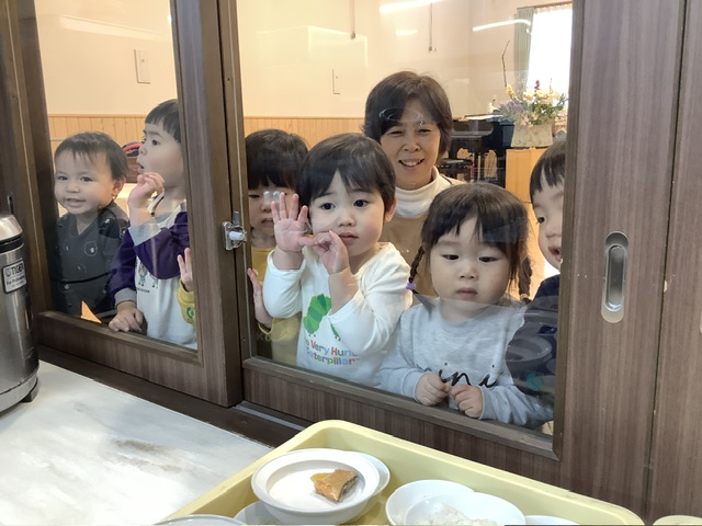 早く食べたい〜と待ちきれない様子のこども達。たくさん食べてね〜と給食チームもニコニコ笑顔に☺️