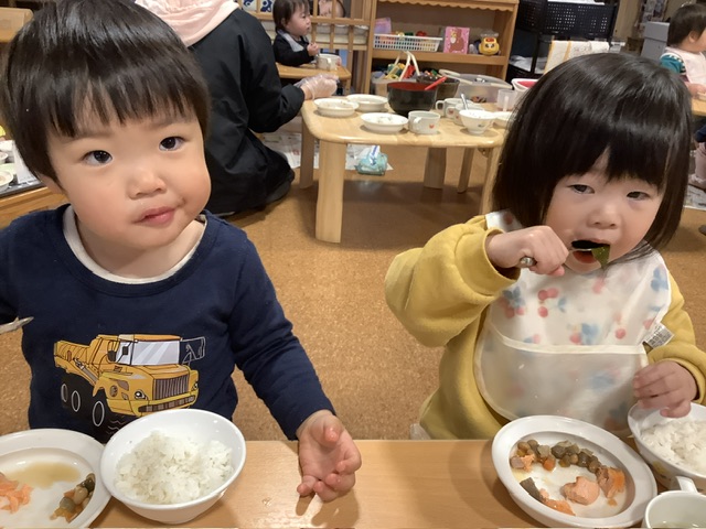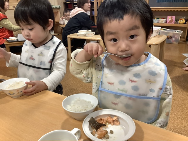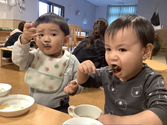 4月の頃に比べると、スプーンで上手にすくえるようになりましたね。こども達の成長をとても感じ、嬉しくなります。