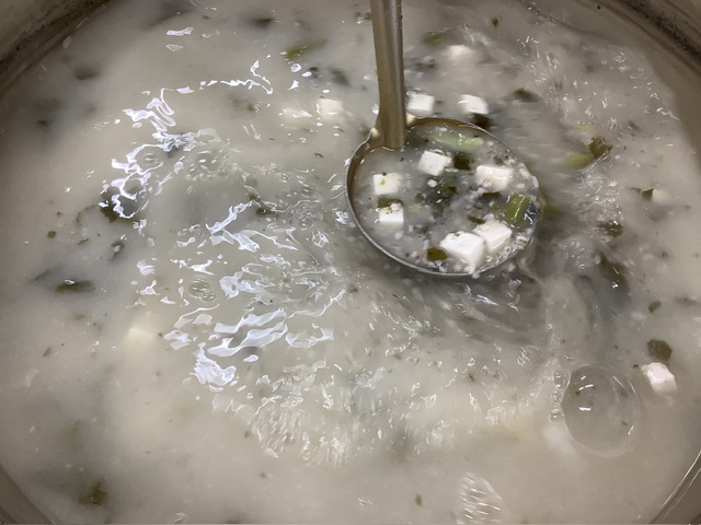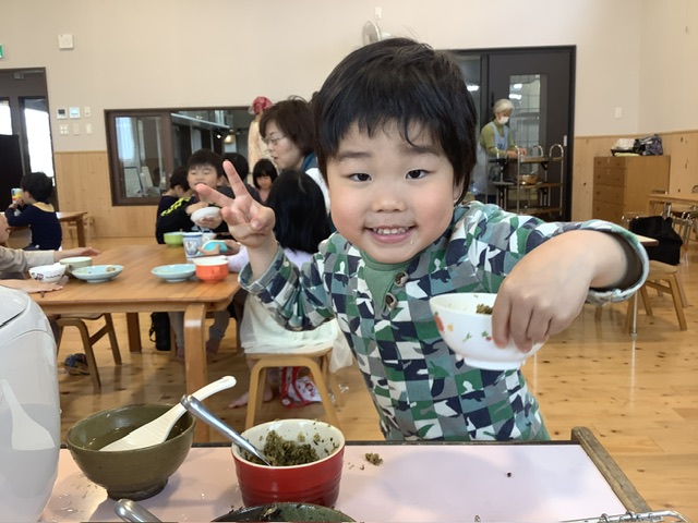 お味噌汁はのはら園で採れたコブ高菜と大根、豆腐、わかめが入りました。