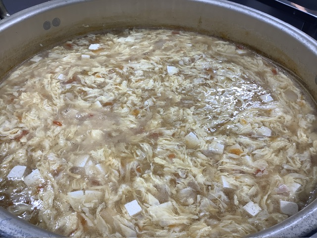 卵スープには、玉ねぎ、トマト、豆腐が入りました。
