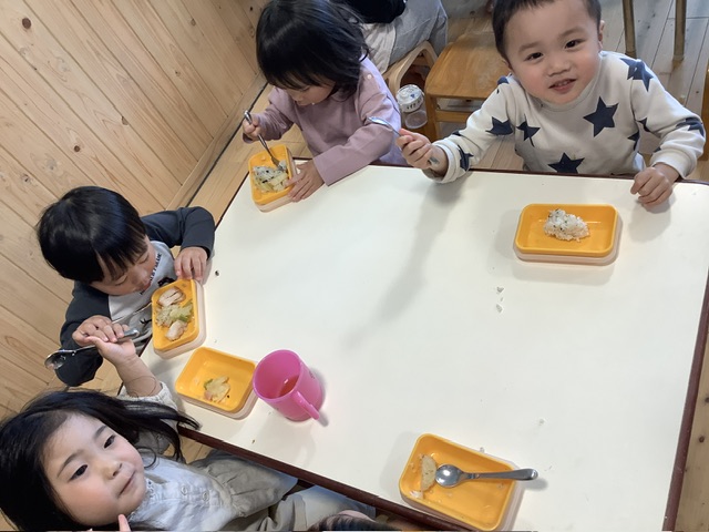 「コレおいしかったよー!!」と野菜をモリモリ食べる姿が見られました。