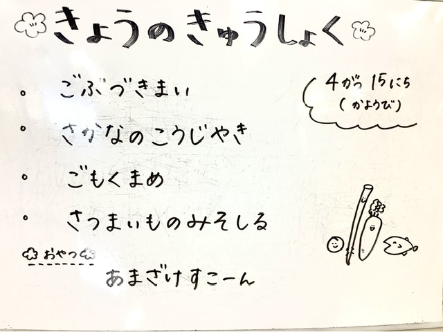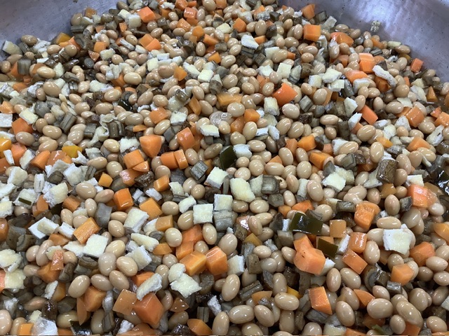 具材を大豆の大きさに揃えてコロコロに切って、きび糖・味の母・濃口醤油でじっくり煮込みました。ランチルームではおかわりをたっぷり盛り付けている子もいるほど、こども達に大人気でした。