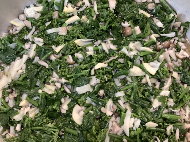 独特の苦味がある菜の花、「こども達は食べてくれるかな?」と給食室では少し心配していましたが、出汁の優しい味わいで苦味が抑えられてこども達も美味しく食べてくれました。