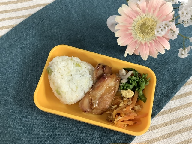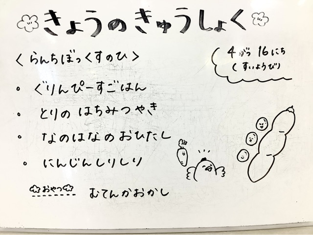鶏肉をはちみつ・にんにく・濃口醤油に漬け込んで、オーブンで香ばしく焼き上げました。はちみつは、園庭にある巣箱で集めた錦ヶ丘の自家製です!