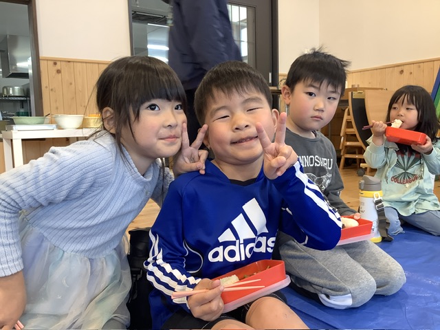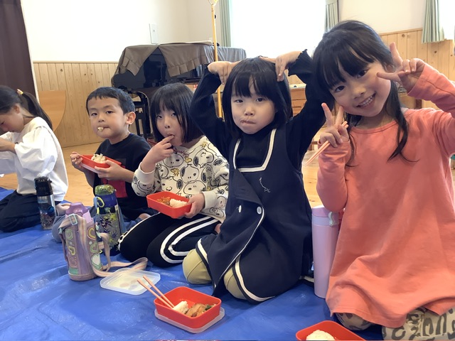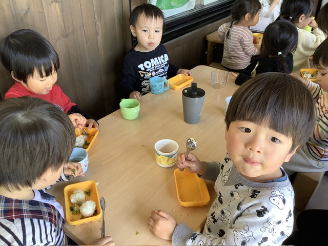 天気も良くぽかぽかと暖かかった今日、ゆり組のこども達はテラスでランチボックスの日を楽しみました。