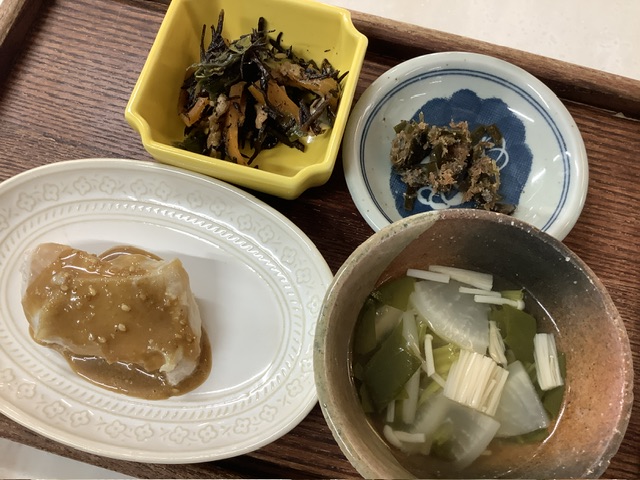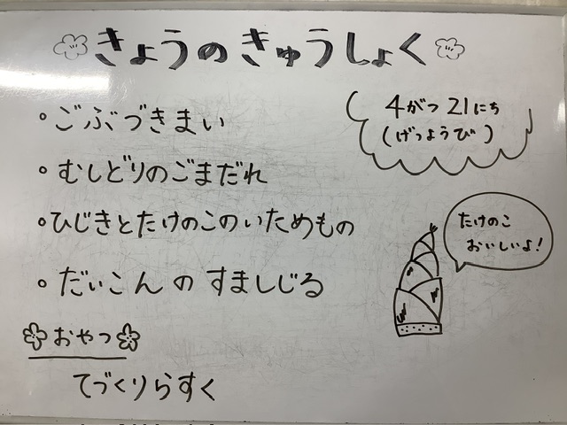 国産ひじき、35ファームの人参と小松菜、生筍、薄揚げが入りました。生筍のシャキシャキとした食感が楽しめる、美味しい炒め物に仕上がりました。