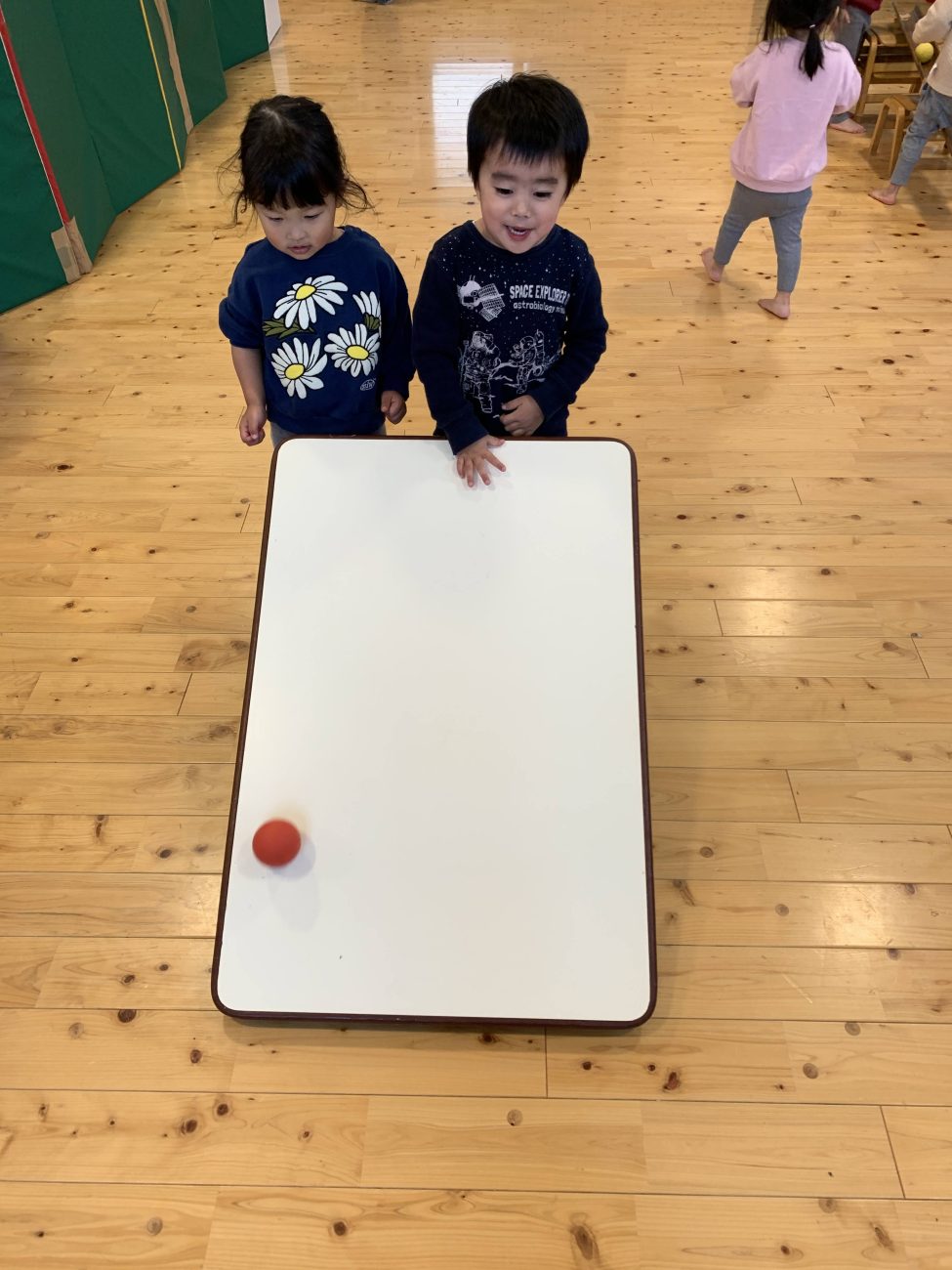 「ほんとだ!何か転がして見ようか?」