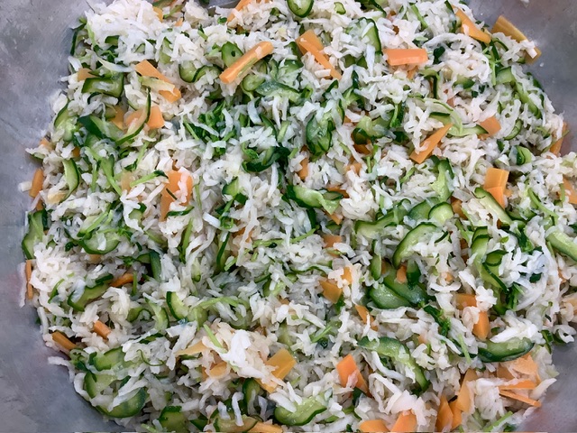 切干大根・35ファームの人参・きゅうり・豆苗が入った酢の物です。