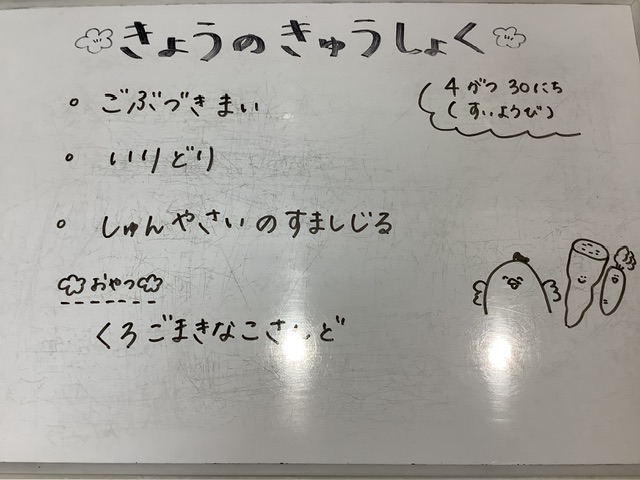 今月の絵本コラボは「そら豆くんのベッド」でしたが、グリンピース、そら豆、スナップエンドウと、いろんなお豆に触れる機会がありました。「そら豆のベッドはふかふかなんだよ」と職員に教えてくれたり、粘土でそら豆を作ったり、絵本と食の繋がりを感じた一ヶ月でした。絵本を通して、いろいろな食材に興味をもってもらえるように、これからも工夫していきたいと思います。