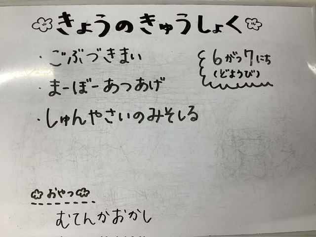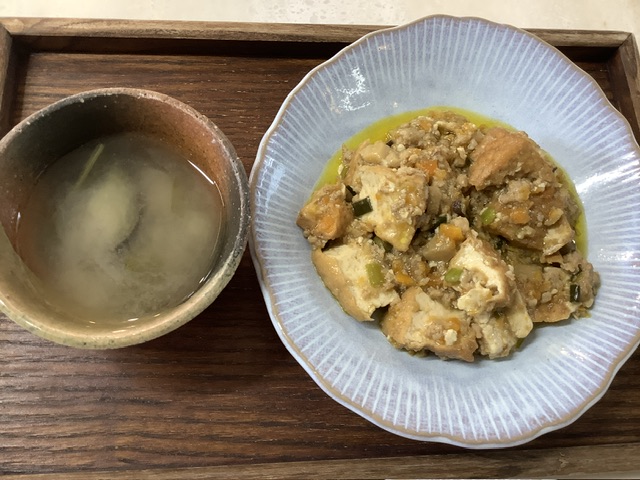 オイスターソースでコクをだし、とても美味しいマーボー厚揚げの出来上がり。何度もおかわりに来る子もいました♪