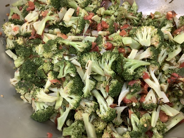 ブロッコリーの塩昆布和えは、今が旬のトマト入り🍅