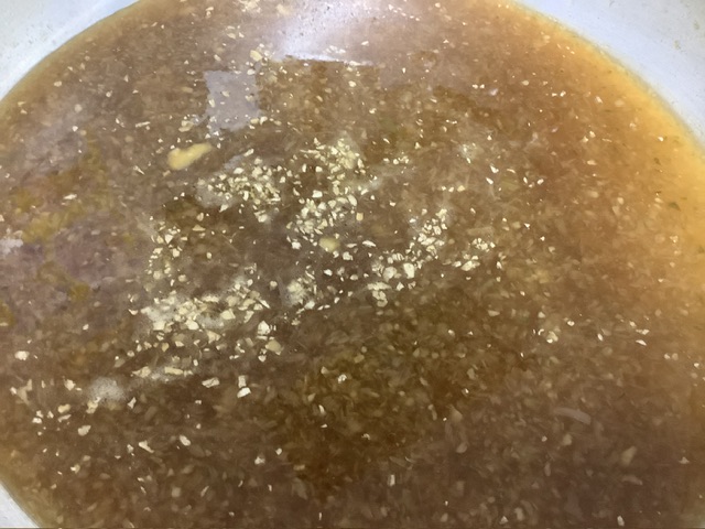 昆布・いりこ・かつお節で出汁を取り、35ファームの玉ねぎ・三つ葉・卵が入っています。