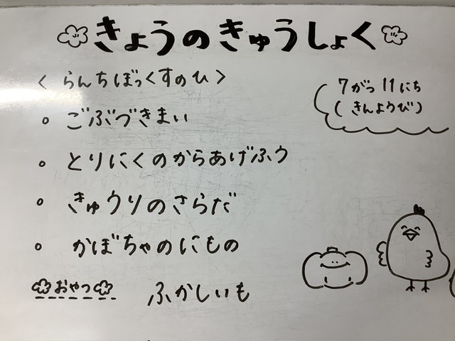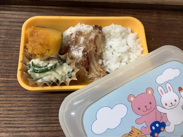 今日は、ランチボックスの日でした。あいにくの雨でしたが、ランチルームにブルーシートをひいて、こども達は楽しそうにランチボックスを食べていましたよ♪