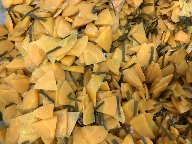 今日は、にんじんとぬか昆布を合わせて、ごま油と塩で味を調えています。