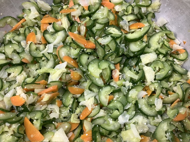 35ファームのきゅうり、キャベツ・にんじんを手作りの塩麹で和えています。