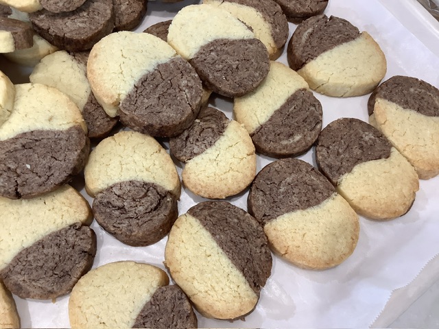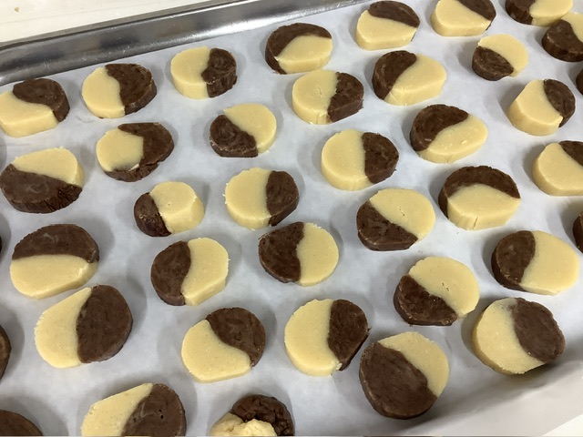 プレーンとココアのクッキー生地を重なるように伸ばして、カットして焼き上げました。