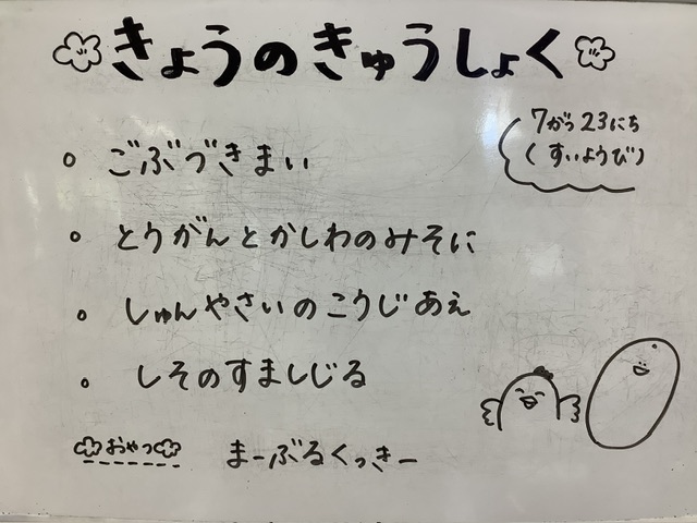 クッキーを作っている最中も、給食室を覗いていたこども達は「今日のおやつ何ですか!」と気になっていた様子でした。2層になったクッキーを見ると「すごーい!」と大喜び!