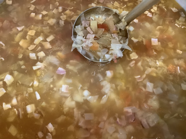 コロコロとさいの目に切った具材たっぷりのスープです。