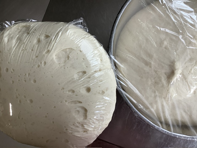 夏場で気温と湿度が高い今の時期は、冬場よりも早く生地の発酵が進みます。ボウルから溢れそうなほど大きく生地が膨らみました。