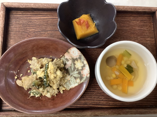 こども達は苦味が強いゴーヤが苦手、、どうしたら美味しく食べてくれるかなと、給食チームで試行錯誤しています。今日のちゃんぷるーに入っていたゴーヤを、苦手だけど一つだけ食べてみようかなと、頑張るこどもの姿も見られましたよ。